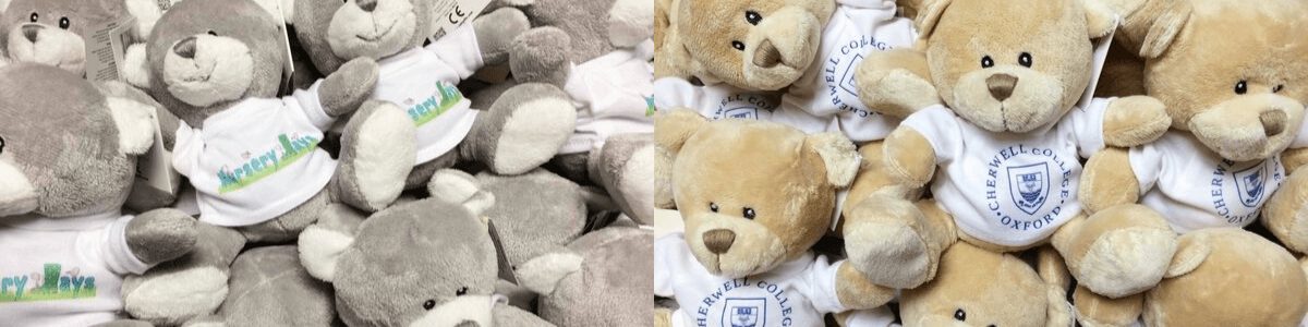 Below are our range of printed promotional teddy bears for Companies, Schools and Charities starting from £6.65 (when ordering 500+). No minimum order quantity.
