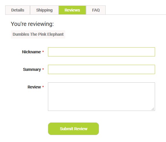 1. Leave a Review directly on our website. Simply click on the product page for the product you would like to review (if reviewing a personalised bear please review the bear) and click on the green "Reviews" tab towards the bottom of the page and you will see a review form to fill in and submit. If the product already has some reviews, then the form will be after the reviews. The reviews don't show automatically. They are manualy reviewed.